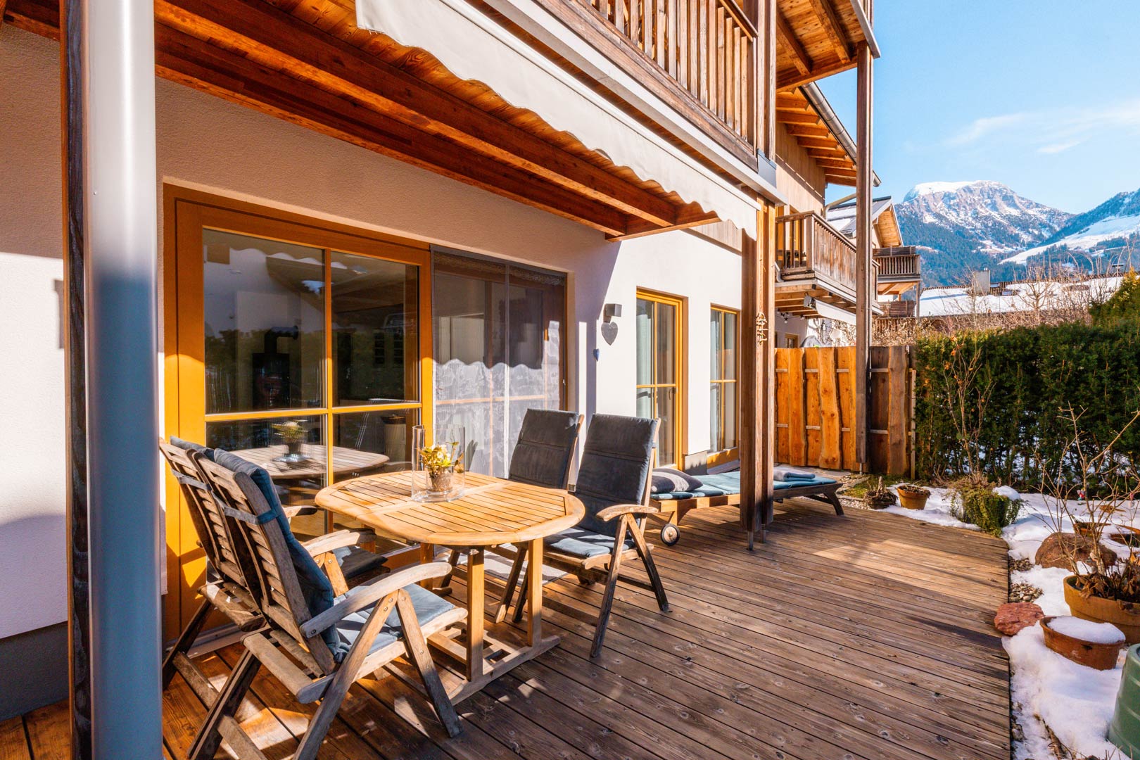 Genießen Sie den herrlichen Blick auf die Berchtesgadener Alpen direkt von Ihrer Terrasse.